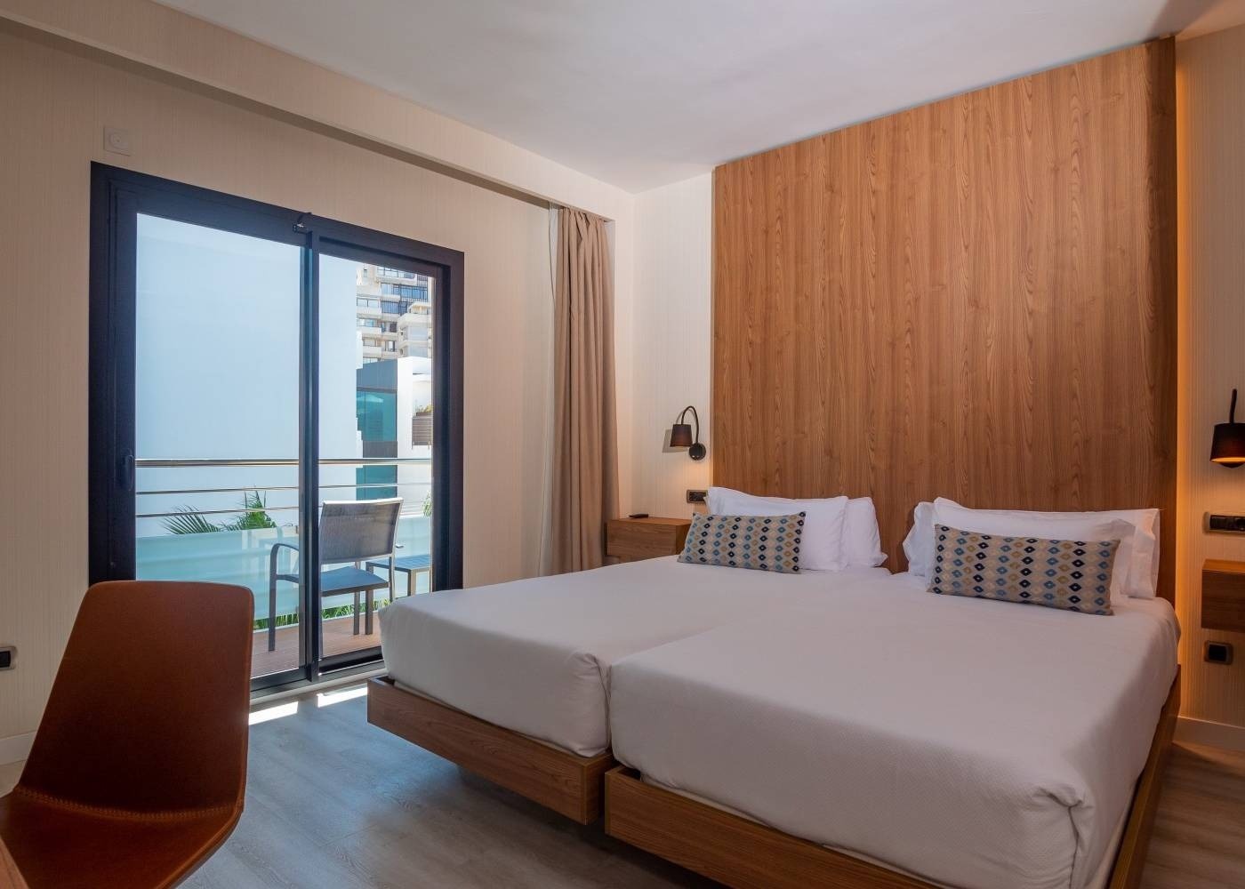 Las habitaciones Economy se encuentran situadas en las primeras plantas del edificio principal, con un pequeño balcón y vistas a una plaza poco transitada.